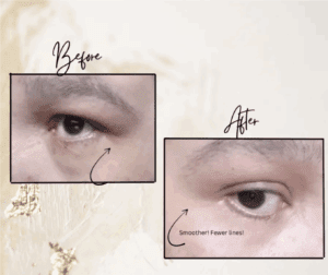 I have tried many (oh so many). One little drop goes a long way as this super light, velvet soft eye and smile serum glides on so smoothly, absorbing shockingly quick. Oh, and the results? See for yourself!